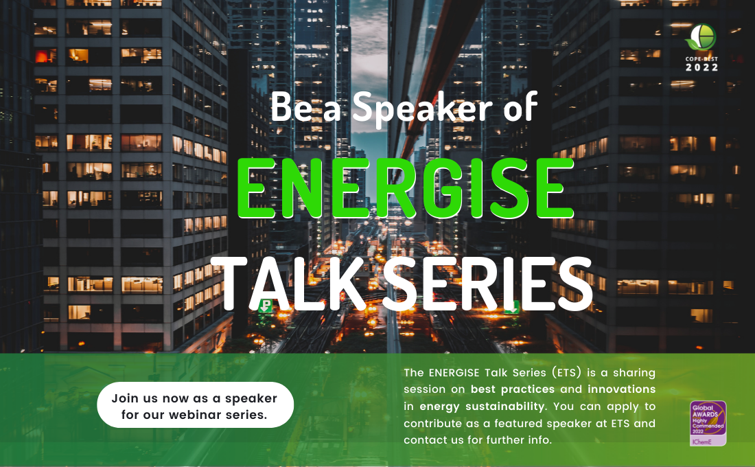 The ENERGISE Talk Series (ETS) is a sharing session on best practices and innovations in energy sustainability.