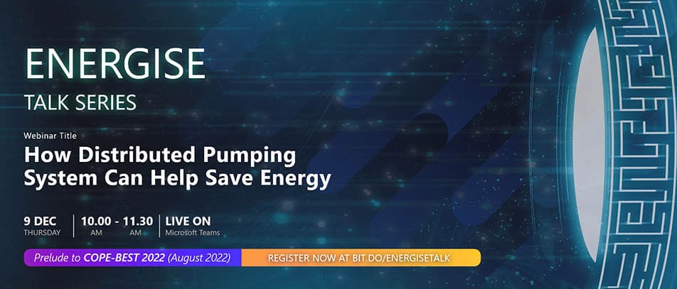 How Distributed Pumping System Can Help Save Energy Join the upcoming webinar to know more aboutΒ the approach of utilizing Distributed Pumping System as a high-efficiency Energy Conservation Technology. This webinar is conducted in conjunction with COPE-BEST 2022 under the ENERGISE...